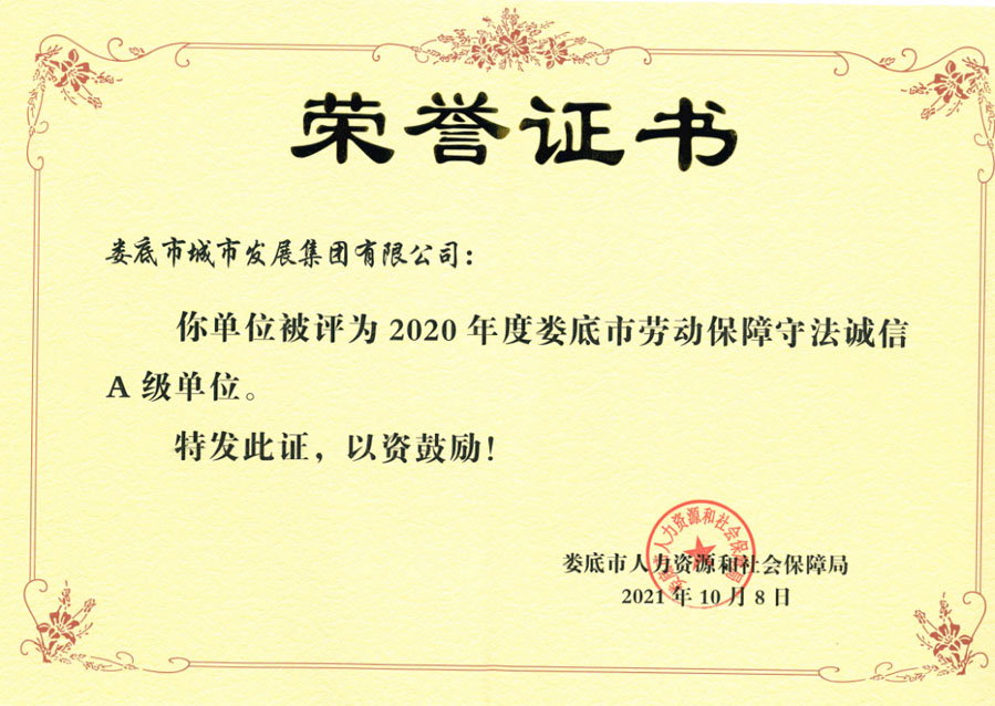 近日,婁底市人力資源和社會保障局公布了2020年度婁底市市本級用人單位勞動保障守法誠信等級評價結(jié)果,婁底市城市發(fā)展集團(tuán)有限公司被評為“勞動保障守法誠信A級單位”。此次,婁底市千余家單位通過用人單位自主申報(bào)、市勞動監(jiān)察局初審、征求相關(guān)部門意見、市人社局審核、網(wǎng)上公示后共優(yōu)選出45家A級單位。這也是市城發(fā)集團(tuán)連續(xù)第四年獲評此榮譽(yù)。